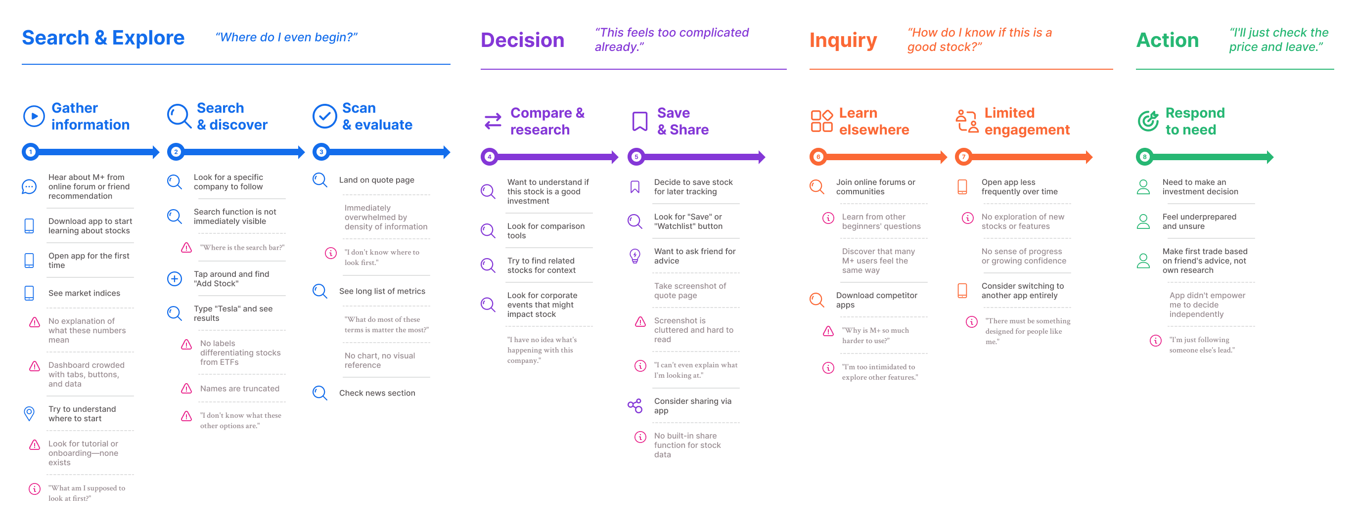 We also worked with the vendor to conduct user interviews, then we consolidated the insights and came up with the investors journey map to help the team better understand the problems.
